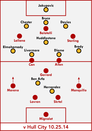 All told, that was an awful lot like last season 2-0 victory over Hull except that A) Liverpool can't rely on set plays to save the day when suffering from open play anymore and B) Neil Swarbrick ignored two penalties that should have been given. Then, even with Suarez (but again without Sturridge), Liverpool couldn't create anything from open play against a resilient back five but still won because a center-back converted a corner (*glares at Lovren*) and then tallied a direct free kick.