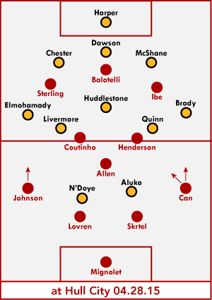We've often talked about learning from mistakes. That Liverpool has tried and failed in three out of four matches against Hull when playing with a lone striker against Steve Bruce's 3-5-2 is maddening. Last season's home win came solely because of two set play goals. Four matches against Hull's 3-5-2, Liverpool playing either 4-2-3-1 or 4-1-2-3, zero open play goals.