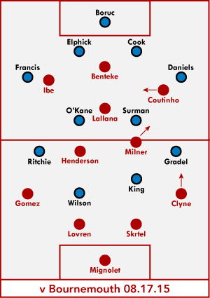 If both Benteke and Sturridge are available, that firepower seemingly demands a diamond, a formation that'd see some favored players left out, but one that also fits with the talents of Firmino, Coutinho, Lallana, Milner, and Henderson, among others.