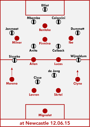 Liverpool deployed a 4-2-3-1 for the first time since Crystal Palace, a similar XI to that which narrowly beat Swansea except with Lucas replacing the suspended Can and Allen preferred to Lallana in midfield. And it was very much like that Crystal Palace, except Liverpool didn't even create the chances that Liverpool missed against Palace, and Newcastle are still much worse than Palace.