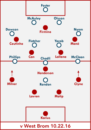 And then it got a lot more nervous. Classic headless chicken content, end-to-end, with Liverpool frantic in both halves. I still think Liverpool probably should have made a sub, any sub, long before the 79th minute. But, to be fair, frantic is what Liverpool does, and the best chances remained the home side's: Firmino twice denied by Foster, Wijnaldum inches wide in injury time. West Brom had more possession, but managed just two shots: Chadli from distance nowhere near the goal and Robson-Kanu from (surprise!) a free kick swiftly blocked.