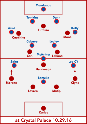 Because a bit of luck's almost always involved, Palace wanted three penalties and got none of them. A different referee or linesman could have given at least one. Probably should have given at least one: the first two - Zaha falling over untouched in front of Lovren and Matip getting the ball before getting Benteke - would've have been either soft or flat wrong, but Can appeared to trip Zaha in the 70th minute. On first viewing, it looks like Can wins the shoulder-to-shoulder, but on replay, there's a little coming-together trip in there. And it's not seen or just not called. Then again, Liverpool could have had two penalties for hard-to-see handballs, so *shrugs emoji*.