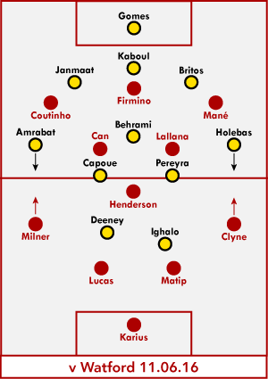 So be it. Watford probably shouldn't have poked the beast anyway, because, unsurprisingly, that goal woke Liverpool right up. Sturridge hit the woodwork twice, had two other shots saved. Coutinho blasted over when open from 12 yards. Firmino could have won a penalty when pulled down going for Coutinho's set play cross. Watford couldn't have been aggrieved had they lost by eight. Finally, in injury time, Wijnaldum scored his first for Liverpool, a rebound on yet another Sturridge effort saved.